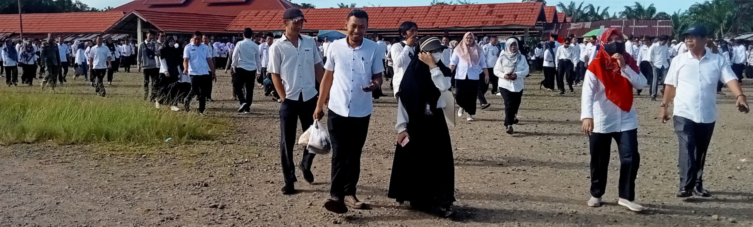 LANGSUNG PULANG: Terlihat peserta apel bersama ASN dan tenaga honorer di Pasar Sembayat yang langsung meninggalkan barisan usai apel digelar, Rabu (30/11/2022)
