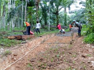 ASAL JADI: Terlihat pekerja sedang mengerjakan jalan sentra produksi Simpang Leban. Dari foto terlihat jika jalan tersebut dikerjakan asal jadi (foto diambil saat pengerjaan jalan beberapa bulan lalu)