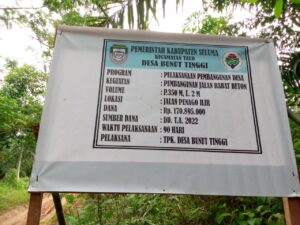 Warnabengkulu.co.id//Kabupaten Seluma-Pembangunan jalan sentra produksi Simpang Leban, Desa Bunut Tinggi, Kecamatan Talo, diduga sarat korupsi. Jalan yang dianggarkan sebesar Rp 170 juta lebih melalui APBDes tahun 2022 tersebut, pembangunannya tidak sesuai spesifikasi. Selain itu diduga pembelian material juga banyak di mark up, bahkan ada beberapa item material jumlah yang dibeli tidak sesuai dengan jumlah yang tertulis dalam RAB.