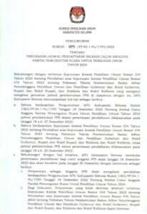 Warnabengkulu.co.id//Kabupaten Seluma – Sesuai dengan keputusan KPU Nomor 534 tahun 2022 tentang perubahan atas keputusan KPU Nomor 476 tentang pedoman teknis pembentukan badan adhoc penyelenggara pemilihan umum dan pemilihan gubernur dan wakil gubernur.
