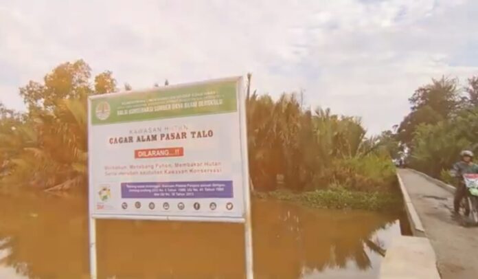 WARNABENGKULU.CO.ID, SELUMA– Kawasan Cagar Alam (CA) Desa Pasar Talo Kecamatan Ilir Talo Kabupaten Seluma Provinsi Bengkulu mulai dirambah untuk dijadikan perkebunan kelapa sawit. Plang merek Cagar Alam yang dipasang BKSDA tak diindahkan oknum perambah yang mulai melakukan pembuatan parit besar dengan menggunakan alat berat.