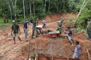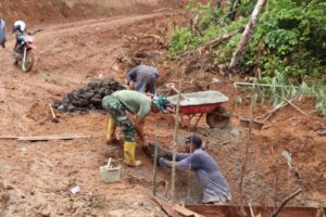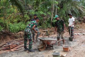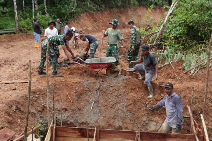 Warna Bengkulu.co.id//Bengkulu Tengah – Pengerjaan plat deker yang dilakukan oleh Satgas TMMD Kodim 0407/Kota Bengkulu bersama dengan masyarakat desa Tengah Padang, kecamatan Talang Empat, kabupaten Bengkulu Tengah sudah memasuki tahap pemasangan pondasi, Rabu (5/3/2025).