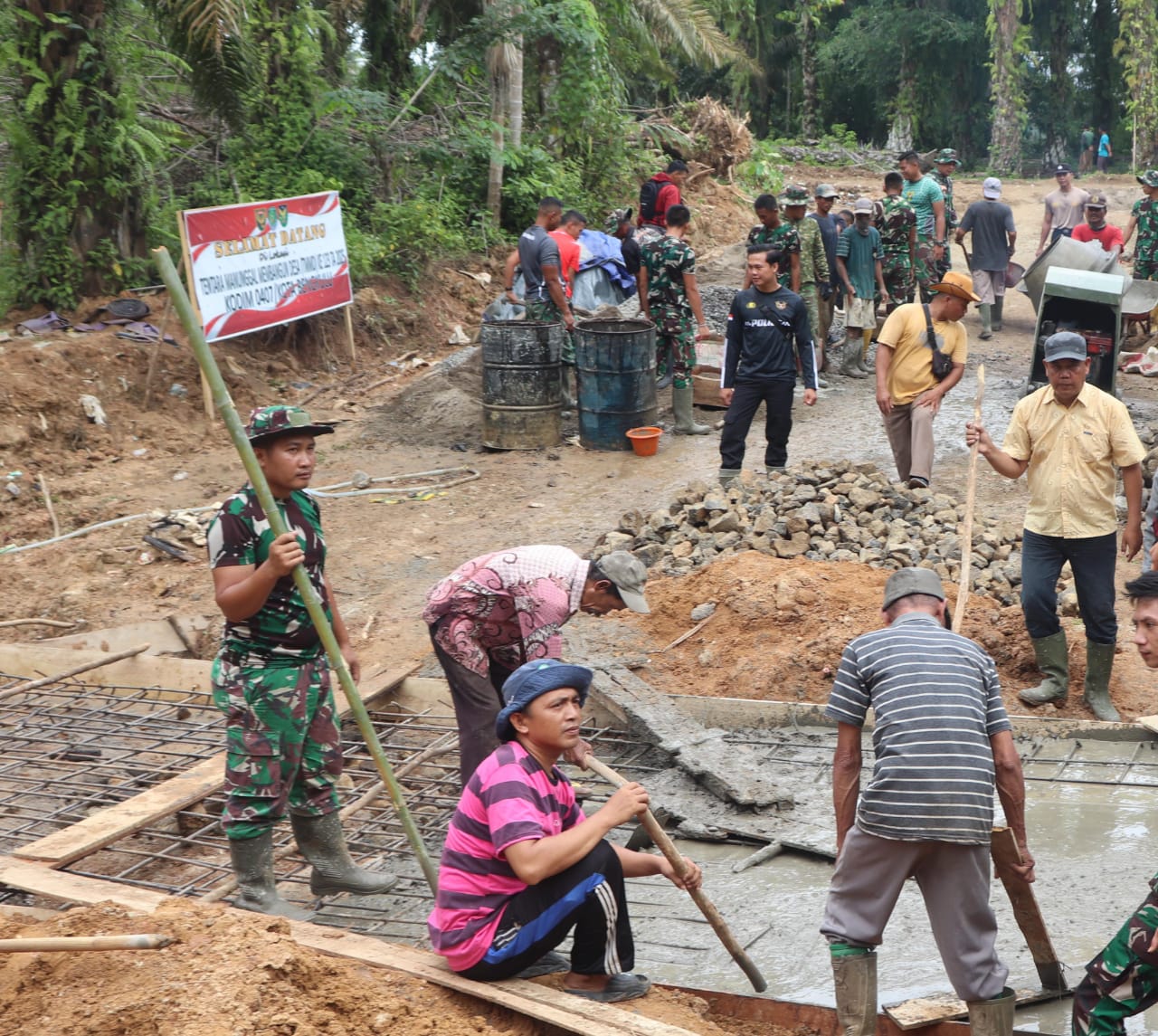 Warna Bengkulu.co.id//Bengkulu Tengah-Program TNI Manunggal Membangun Desa (TMMD) ke-123 Kodim 0407/Kota Bengkulu terus berlangsung. Kali ini Satgas TMMD bersama masyarakat setempat membuat Plat Duiker di salah satu titik tertentu sepanjang perintisan jalan yang juga merupakan salah satu sasaran fisik TMMD di Desa Tengah Padang Kecamatan Talang Empat Kabupaten Bengkulu Tengah Minggu (9/3/2025).