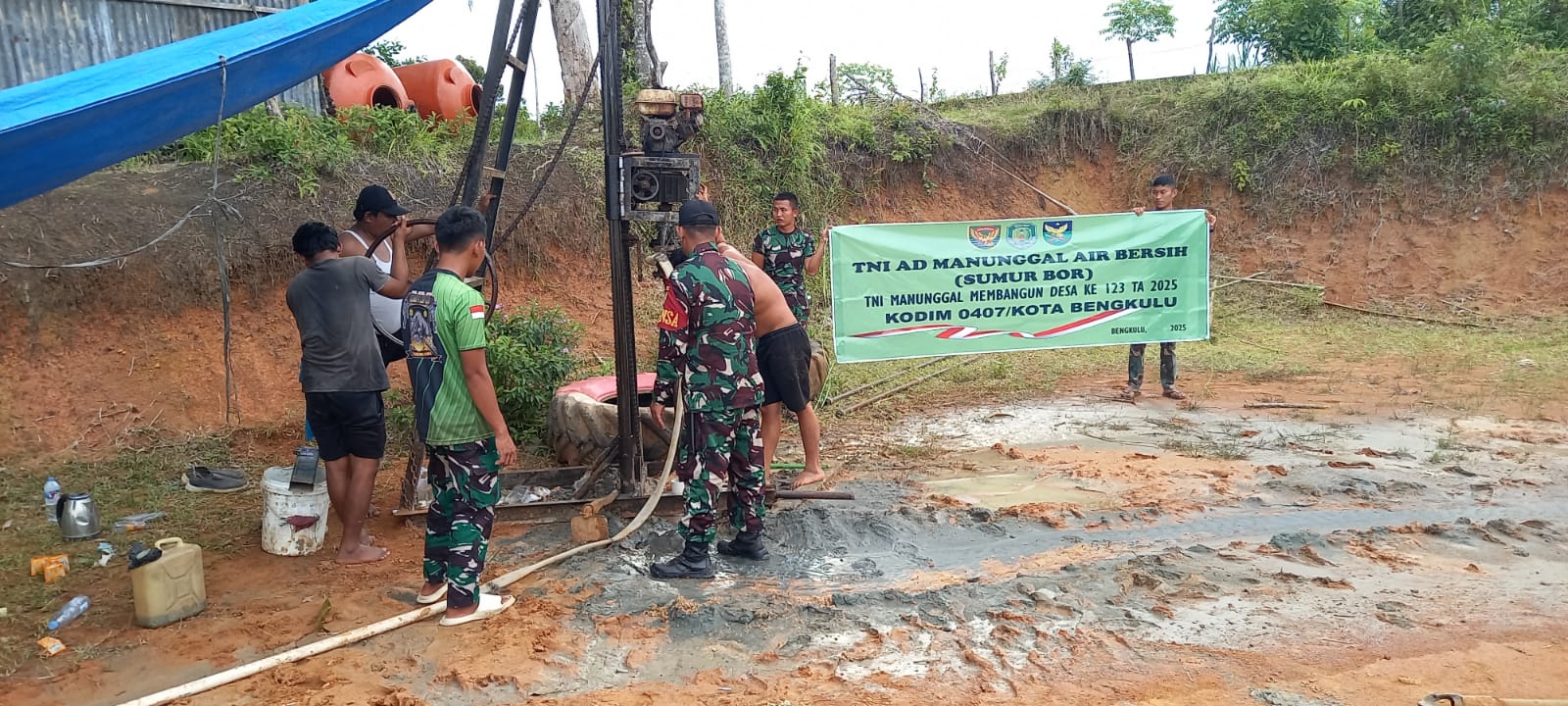 Warnabengkulu.co.id//Bengkulu Tengah –Bengkulu Tengah-Satgas TMMD ke-123 Kodim 0407/Kota Bengkulu terus bertekad dalam melaksanakan pembangunan sumur bor di Desa Tengah Padang,Kecamatan Talang Empat,Kabupaten Bengkuku Tengah yang menjadi sasaran akhir, Selasa 11/3/2025.