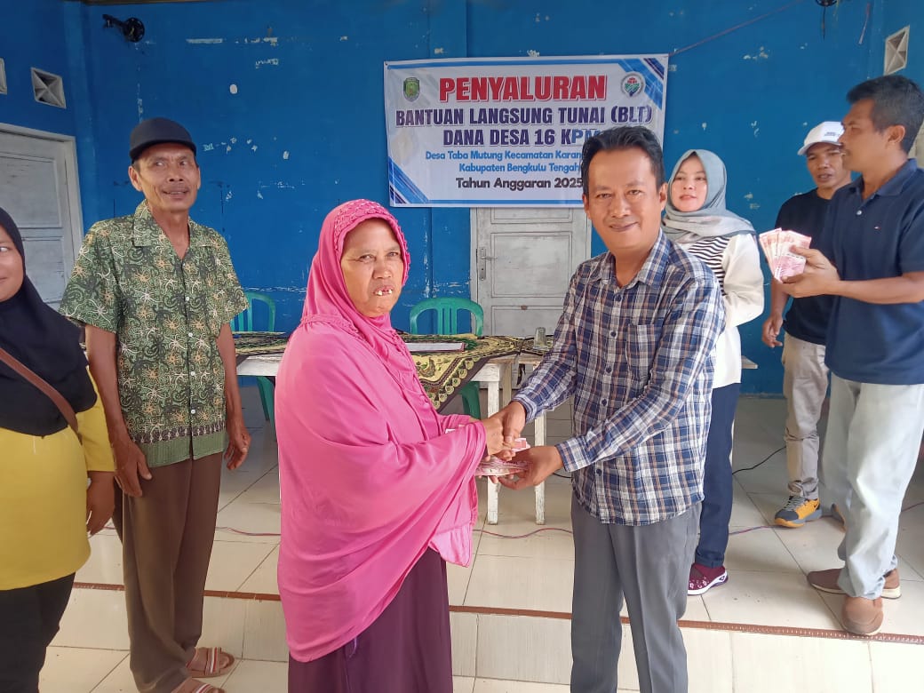 Warna Bengkulu.co.id//Bengkulu Tengah– Ada sebanyak 16 Keluarga Penerima Manfaat (KPM) di Desa Taba Murung Karang Kecamatan Karang Tinggi Kabupaten Bengkulu Tengah menerima Bantuan Langsung Tunai Dana Desa (BLT DD) tahap pertama tahun 2025. Penyaluran dilakukan pada Rabu ( 14/05/2025).