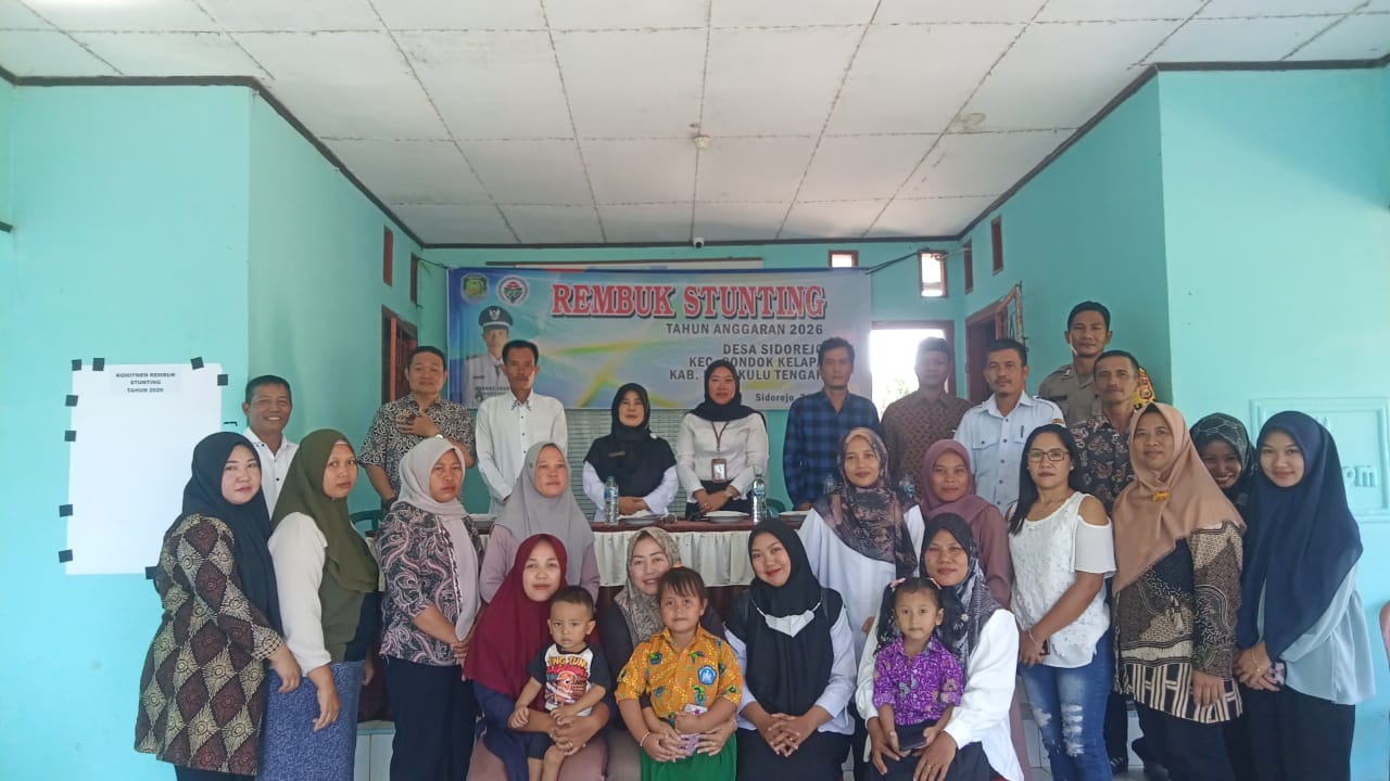 Bengkulu Tengah- Pemerintah Desa Sidorejo, melaksanakan Rembuk Stunting untuk percepatan penurunan stunting di wilayah desa. Selanjutnya dilaksanakan Usulan Rangka Penyusunan Rencana Kerja Pemerintah Desa (RKPDes) untuk tahun 2026, yang dilaksanakan pada Rabu (23/07/2025) yang berlokasi di Kantor Desa Sidorejo Kecamatan Pondok Kelapa Kabupaten Bengkulu Tengah.