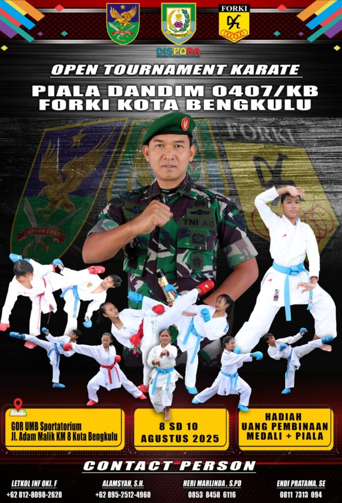 Warnabengkulu.co.id//Bengkulu- Dalam rangka memperingati dan memeriahkan HUT Kemerdekaan ke-80 tahun Republik Indonesia (RI), sejumlah agenda kegiatan bakal diselenggarakan oleh Kodim 0407/Kota Bengkulu dan FORKI Kota Bengkulu. Selain aksi sosial, ada juga turnamen olahraga.