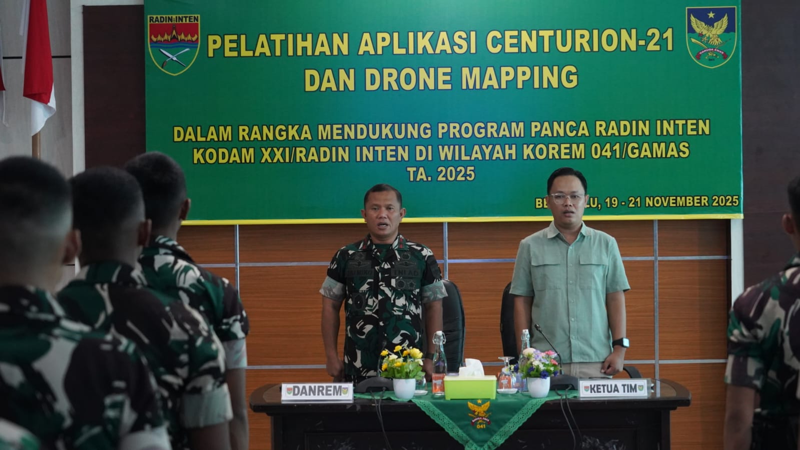 Warna Bengkulu.co.id//Bengkulu – Komandan Korem 041/Garuda Emas, Brigjen TNI Jatmiko Aryanto, S.E., M.Han secara resmi membuka Pelatihan Aplikasi Centurion-21 dan Drone Mapping dalam rangka mendukung Program Panca Radin Inten Kodam XXI/Radin Inten di wilayah Korem 041/Gamas TA. 2025. Kegiatan pembukaan dilaksanakan di Aula Sudirman Korem 041/Gamas. Rabu (19/11/2025).