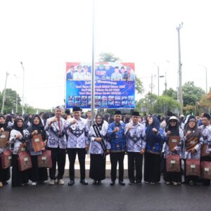 Drs. Rachmat Riyanto, S.T., M.A.P., yang dalam amanatnya menyampaikan apresiasi setinggi-tingginya kepada seluruh guru dan anggota KORPRI atas dedikasi, pengabdian, serta peran penting mereka dalam pembangunan daerah dan peningkatan kualitas pelayanan publik.