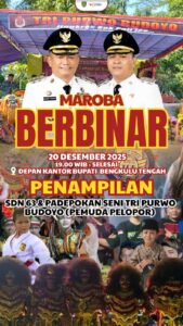Dalam memeriahkan malam Minggu (20/12/2025) Berbinar yang berlokasi di Halaman Kantor Bupati Bengkulu Tengah. Pemuda pelopor asal Bengkulu Tengah dari Desa Mergo Mulyo Kecamatan Pondok Kubang menampilkan aksi kesenian kuda kepang.