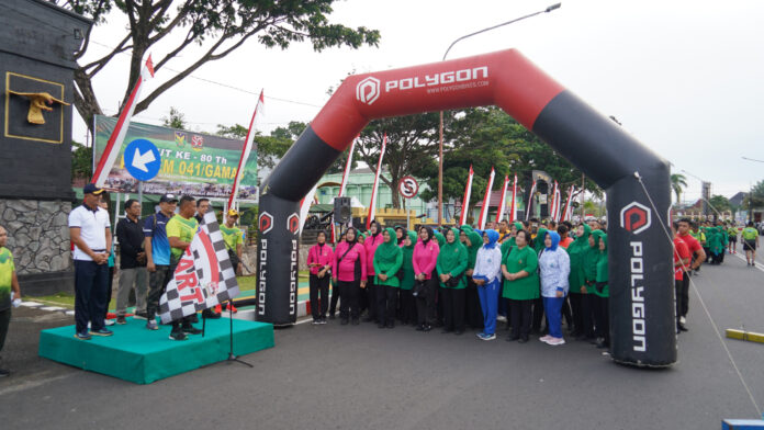 Warnabengkulu.co.id//Bengkulu – Memasuki puncak HUT ke-80 Korem 041/Gamas, Korem 041/Gamas menggelar jalan santai dan bazar murah. Kegiatan jalan santai dilepas langsung oleh Danrem 041/Gamas yang diwakili Kasrem 041/Gamas Kolonel Inf Edison S. Sinabutar, S.Sos. didamping Kasiren Korem 041/Gamas dan Para Kasi Kasrem 041/Gamas. Jum’at (13/2/2026).