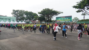 kegiatan dilanjutkan dengan senam sehat yang di ikuti oleh Para Forkopimda Prov dan Kota Bengkulu, Para PJU Korem 041/Gamas dan Polda Bengkulu, Ketua Persit KCK Koorcab Rem 041 PD XXI/RI beserta pengurus, personel jajaran Korem 041/Gamas dan keluarga serta Masyarakat Kota Bengkulu.